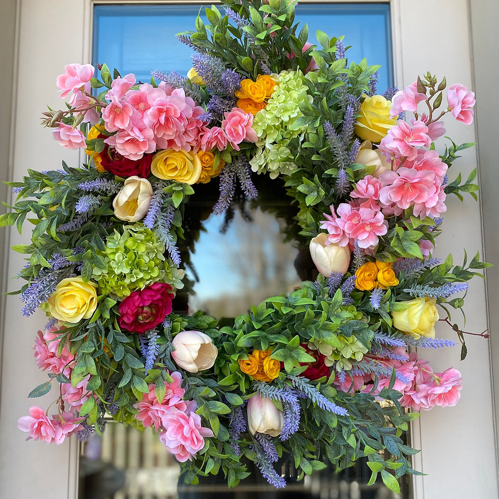 Pink Hydrangeas & Cream Tulips Wreath - 32" in Diameter